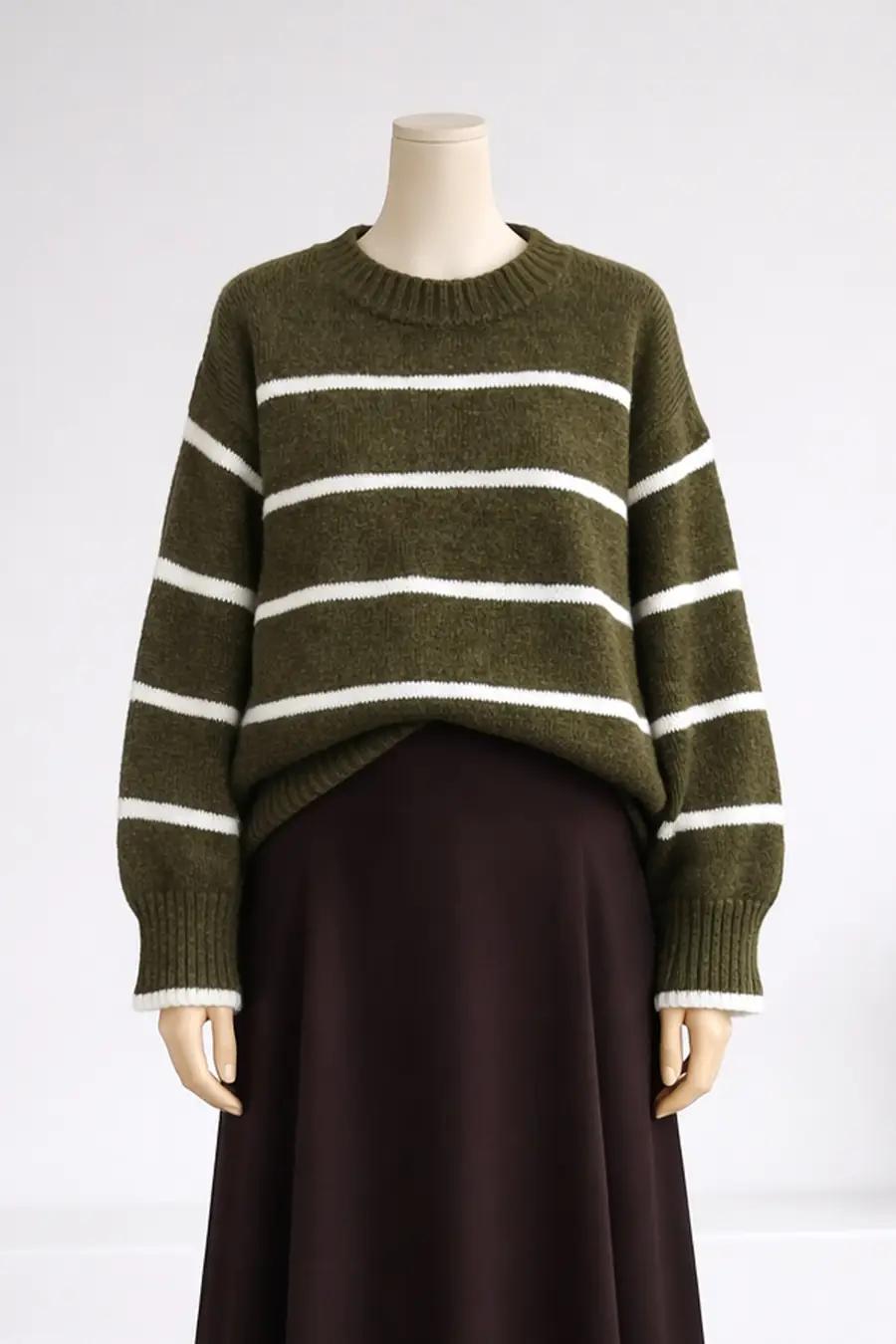 Çizgili Bisiklet Yaka Kazak