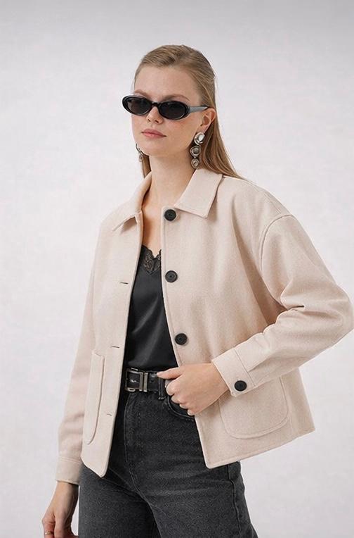 Zarif krem tonu ve klasik kaşe dokusuyla hem sofistike hem zamansız bir şıklık sunan bu ceket, soğuk havaların en şık tamamlayıcısıdır.