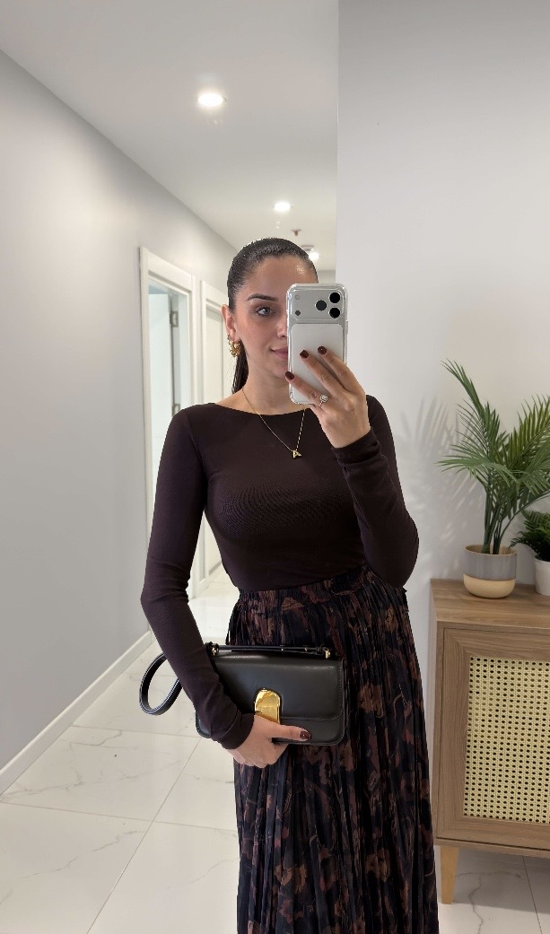 Akışkan şifon dokusu ve konforlu bel lastiği detayıyla hem zarif hem rahat bir kullanım sunan bu siyah etek, her kombin için zamansız bir tamamlayıcıdır.