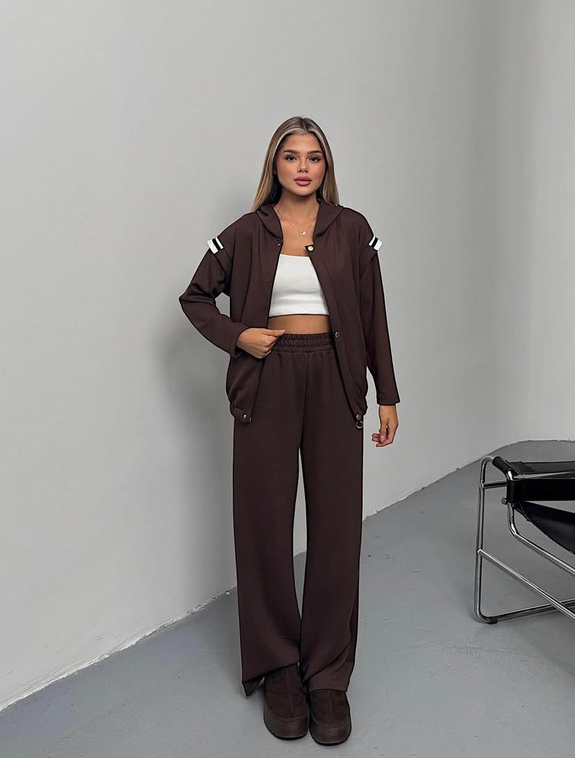 Doğal modal kumaşın yumuşak dokusu ve kahverenginin sıcak tonuyla hem konforlu hem şık bir görünüm.